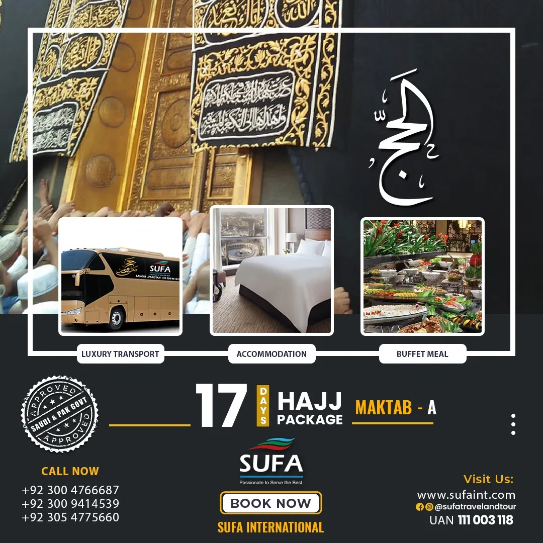 - Package Includes Visa + Transport with air ticket and food (Med Half Board, Azizia & Mina three times with Buffet Basis provided by Company through Catering Services).
